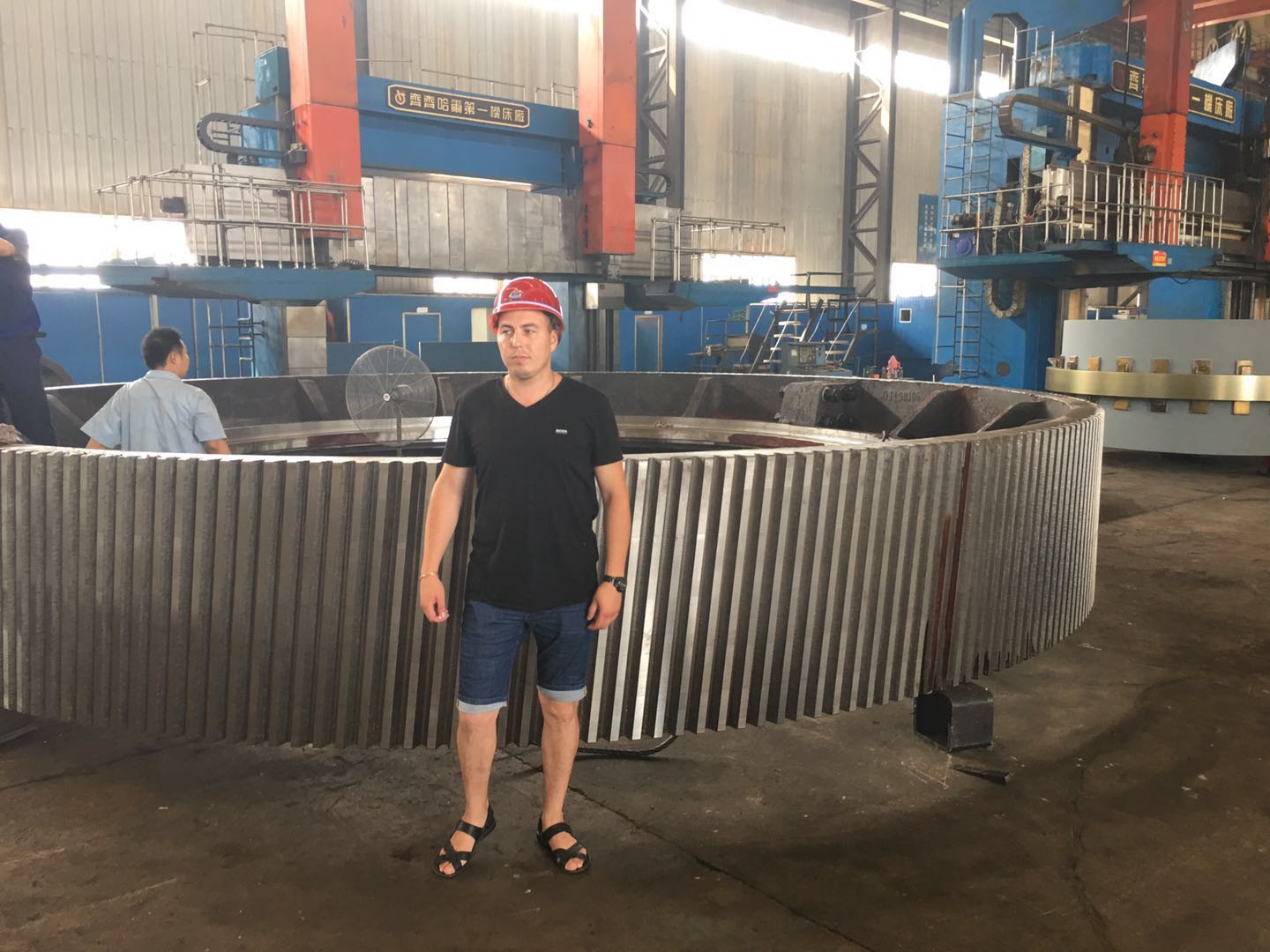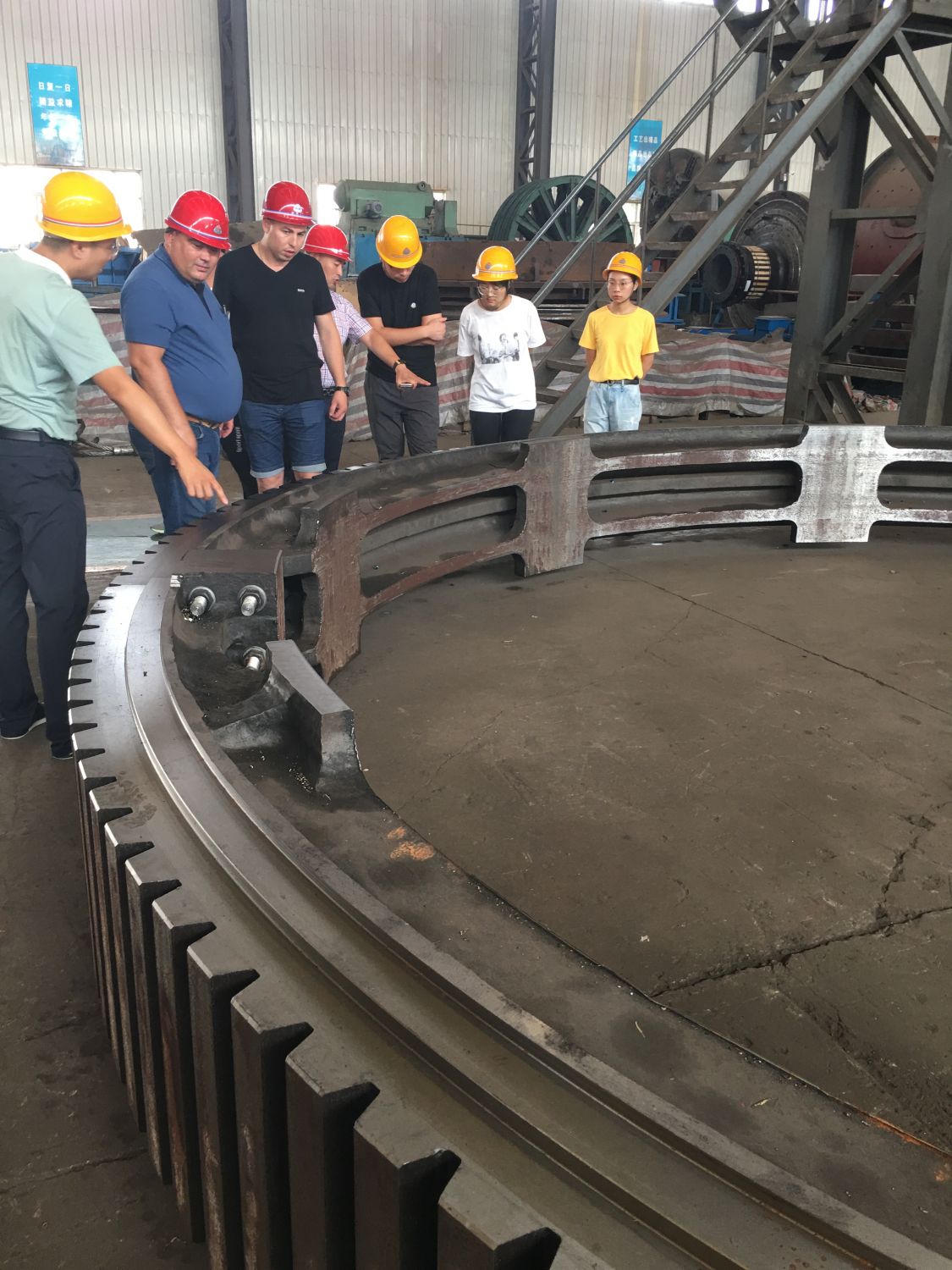 客戶(hù)在磨機(jī)配件齒圈前畱影紀(jì)念