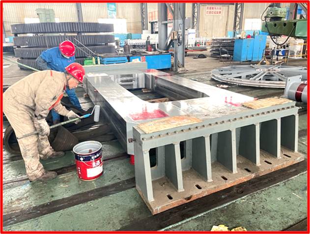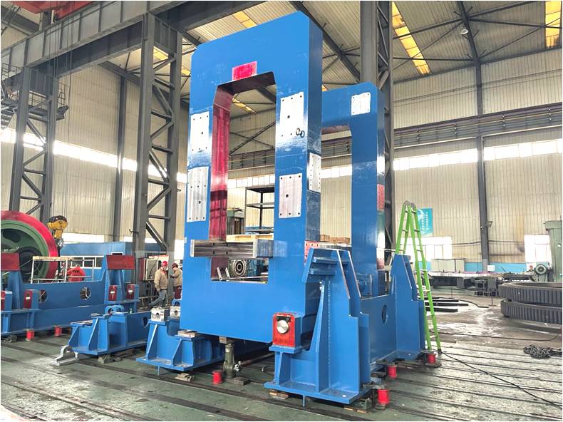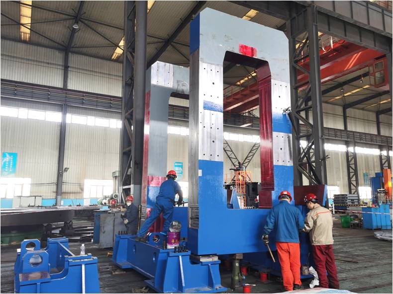 軋機(jī)項(xiàng)目在成套廠裝配平臺進(jìn)行總裝調(diào)試工序,第一臺2件機(jī)架已安裝就位。
