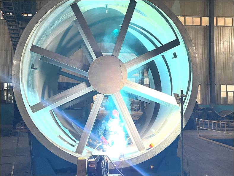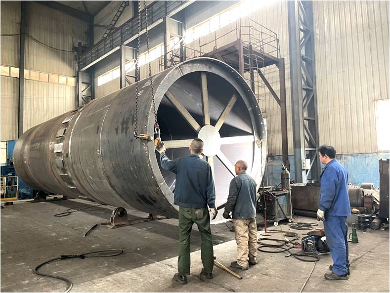 重點(diǎn)項(xiàng)目φ3.2×24m干燥機(jī)在重型成套廠鉚焊車間全速推進(jìn),生產(chǎn)現(xiàn)場(chǎng)火光四濺,生產(chǎn)氣氛一片火熱